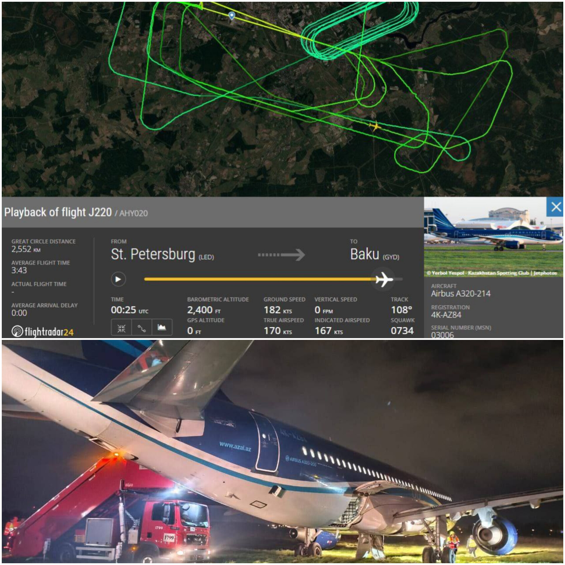 پرواز ایرلاین آذربایجان که از فرودگاه پولکوو سنپترزبورگ به مقصد باکو در حال انجام بود، پس از بروز مشکل فنی در سامانه ارابه فرود (لندینگگیر)، مجبور به بازگشت اضطراری شد.